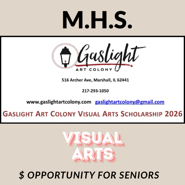 Gaslight Art Colony offers a $500.00 Scholarship to any 2026 graduating high school student attending college in the fall of 2026 with an interest in Visual Arts. Applicants may apply now. This Visual Arts Scholarship is designed to assist students to further their studies in the visual arts; including painting, illustrating, graphic design, sculpture, fine crafts and photography. Applications must be received before April 15, 2026.